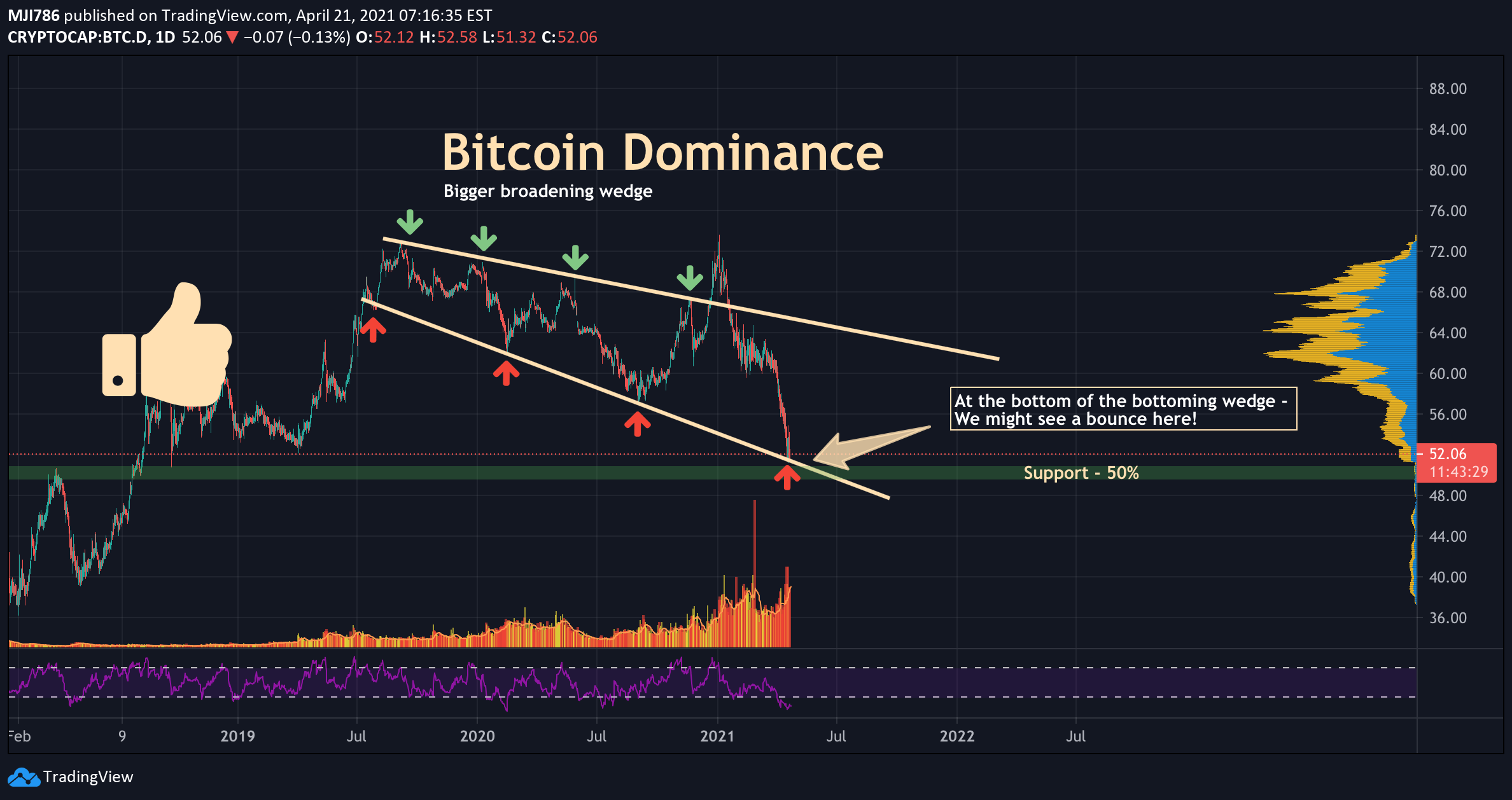 Bitcoin Market Cap Dominance Tradingview : Bitcoin Dominance Btc D Looking Bullish Set To Move Higher For Cryptocap Btc D By Alansantana Tradingview : Cryptocap:btc.d işlem fikirleri, tahminler ve piyasa haberleri de sizin emrinizde.. Cryptocap:btc.d handelsideen, prognosen und marktnachrichten stehen ihnen ebenfalls zur verfügung. To many people in crypto this is a key bitcoin graph to understand the entire space. See the total crypto market cap, which is 0.87% lower than yesterday, defi coins market cap has decreased by 0.89%. The current coinmarketcap ranking is #1, with a live market cap of $1,036,535,244,052 usd. 23.11.2021 · the above chart shows the total cryptocurrency market capitalization, excluding bitcoin.